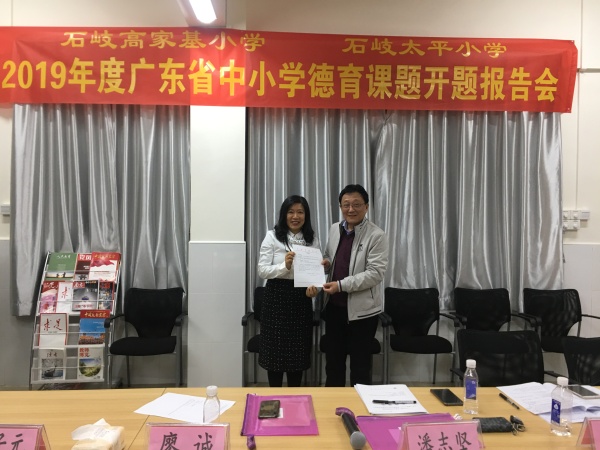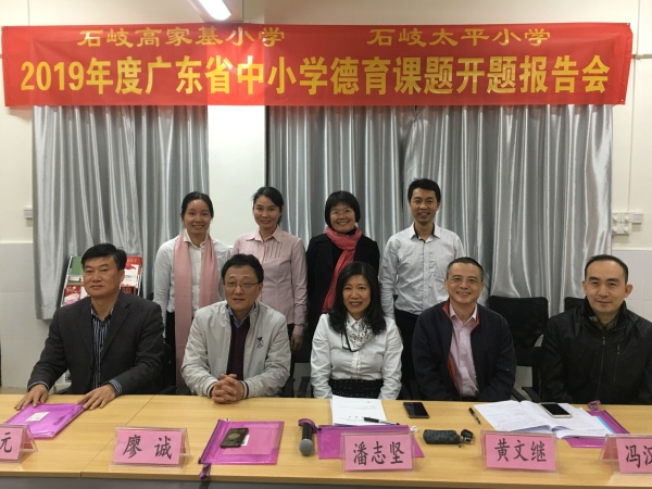 12月6日下午,石岐太平小學(xué)和高家基小學(xué)聯(lián)合在高家基小學(xué)煙墩校區(qū)一號樓三樓黨員活動室舉行了2019年度廣東省中小學(xué)德育課題開題報告會。出席報告會的有中山市教育工委副書記廖誠,市中小學(xué)德育中心副主任、石岐區(qū)教育事務(wù)指導(dǎo)中心德育專干潘志堅,三角鎮(zhèn)蟠龍小學(xué)段子元校長,廣東省名班主任工作室主持人黃文繼老師,石岐太平小學(xué)鄭結(jié)霞校長引領(lǐng)的太平小學(xué)課題組成員,石岐高家基小學(xué)黃榮勝校長引領(lǐng)的高家基小學(xué)課題組成員以及石岐實驗小學(xué)馮漢文校長。