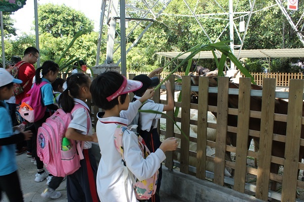 此外,同學(xué)們還觀賞了驚險(xiǎn)刺激的“鱷作劇”、"百鳥飛歌"、濕地精靈秀等動(dòng)物表演,不少同學(xué)甚至近距離與天鵝、鸚鵡來個(gè)親密接觸,用園區(qū)指定的食物喂給這些可愛的飛鳥……那些都是小朋友們平時(shí)很難得見到的奇珍異獸和動(dòng)物表演。同學(xué)們面對(duì)著兇猛的鱷魚或蜥蜴,雖然有點(diǎn)害怕,但還是難掩心中的興奮之情,在好奇心的驅(qū)使下,慢慢地向它們靠近,近距離觀察這些爬行動(dòng)物和飛鳥。
