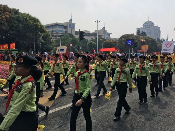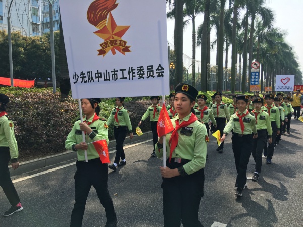 仙小少年軍校領袖團代表中山市少先隊工作委員會及中山市少先隊特色社團參加團市委游行方隊,他們身穿訓練服,精神抖擻、意氣風發(fā),大步走在大道上,不時高喊習總書記對全國少先隊員的寄語“從小學習做人,從小學習立志,從小學習創(chuàng)造”,受到了圍觀群眾的熱烈喝彩。