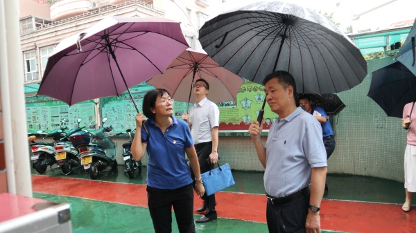 一大早,大雨如注,黃桂光書記一行冒雨來到了太平小學,進行調(diào)研指導工作。黃桂光書記來到學校,首先認真地聽取了鄭結(jié)霞校長關(guān)于開學工作匯報,然后詳細了解了學校的辦學規(guī)模、設施設備、師生到校及學校存在的困難等情況,他特別詢問學校還有哪些方面需要區(qū)政府幫忙解決的問題。鄭結(jié)霞校長表示對黃桂光書記對學校教育工作的關(guān)心表示衷心的感謝。她說,學校的一切教育教學工作都在有序的開展,老師和孩子們個個精神煥發(fā),學校設施設備一切正常運行,歡迎黃桂光書記有空常到學校來調(diào)研,多多指導學校的教育發(fā)展工作。當黃桂光書記了解到學校的校舍是多年前在市、區(qū)政府的“穿衣戴帽”工程中加固翻新之后換的新顏時,對學校建筑的安全問題也進行了詳細的了解。他稱贊太平小學雖然建筑面積小,但校園環(huán)境優(yōu)美,管理有序,是學生學習的好地方。