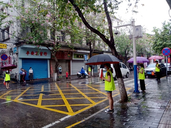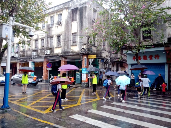 開學第一天,有一份愛叫作“護?!?。這樸實的畫面是濃濃的愛、是恬淡的詩,構成開學第一天石岐高家基小學雨中的風景。學校護校隊用他們的實際行動,為孩子們上下學保駕護航,得到家長和學校的肯定。