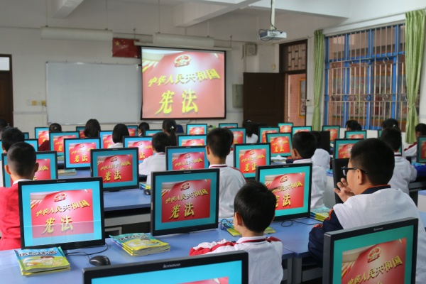 12月4日早晨,全校師生在教室舉行了憲法晨讀活動,梁小玲副校長選取了憲法第二章中的部分內(nèi)容向全體師生進行宣講,梁副校長不僅用生動的事例來宣傳憲法,在校園內(nèi)營造了學(xué)習(xí)憲法的氛圍,而且電腦課時間也組織學(xué)生觀摩教育部全國青少年普法網(wǎng)的“國家憲法日”主題教育直播節(jié)目,進行同步學(xué)習(xí)。隨后展開了“國家憲法日,讓憲法精神照亮美麗校園”的手抄報制作及征文活動。