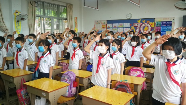 在疫情防控的特殊時(shí)期,學(xué)校扎實(shí)開(kāi)展疫情防控教育,推進(jìn)抗疫精神進(jìn)課堂,組織學(xué)生在室內(nèi)舉行復(fù)學(xué)儀式,當(dāng)國(guó)歌、校歌的旋律再次響起,整個(gè)校園又充滿(mǎn)了活力,只見(jiàn)教室里所有同學(xué)紛紛起立,目光熾熱地注視著前方的五星紅旗,鏗鏘有力地唱響了嘹亮的國(guó)歌,余聲在校園上空回蕩著,表達(dá)了學(xué)子們對(duì)祖國(guó)的熱愛(ài)。莊嚴(yán)的升旗儀式后,學(xué)生代表區(qū)雅茜跟全體同學(xué)談了自己如何調(diào)整狀態(tài)適應(yīng)校園生活和學(xué)習(xí)的方法,倡議同學(xué)們珍惜這來(lái)之不易的入學(xué)機(jī)會(huì),爭(zhēng)取在學(xué)習(xí)上更上一層樓。接著,劉依婷校長(zhǎng)為四到六年級(jí)學(xué)生作《開(kāi)學(xué)第一課》主題講話,她強(qiáng)調(diào)疫情防控時(shí)期復(fù)學(xué),在校師生要嚴(yán)格遵守學(xué)校的各項(xiàng)防疫措施和流程,嚴(yán)格做好師生在校一日活動(dòng)常規(guī)。最后,各班班主任圍繞 “敬畏生命 熱愛(ài)生活”開(kāi)展主題班會(huì),學(xué)習(xí)如何科學(xué)應(yīng)對(duì)疫情、如何保證生命健康等知識(shí),增強(qiáng)學(xué)生心理調(diào)適和關(guān)注心理健康意識(shí)、能力。