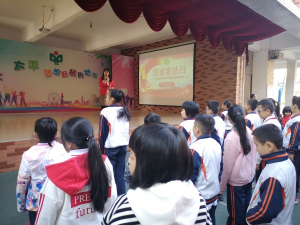 為加強(qiáng)法制宣傳教育,進(jìn)一步增強(qiáng)石岐太平小學(xué)全體師生的法制意識(shí),做一名學(xué)法、知法、懂法、守法的小學(xué)生。2019年12月2日至12月6日,石岐太平小學(xué)開(kāi)展了多種形式的“12.4的憲法宣傳周”主題教育活動(dòng)。