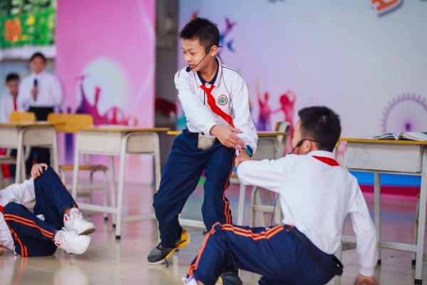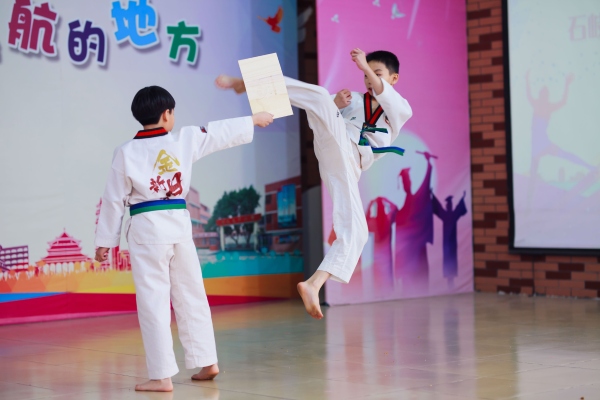 接下來(lái)是古典舞《大魚(yú)海棠》,小品《我的未來(lái)不是夢(mèng)》,合唱《東方之珠》,舞蹈《隱形的翅膀》,小提琴《沂蒙山》等節(jié)目陸續(xù)登場(chǎng)。四(2)班同學(xué)表演的舞蹈《天竺少女 太平腳丫》把比賽活動(dòng)推向了高潮,女演員們曼妙的舞姿和男演員奔放的街舞完美地融合在一起,充分展現(xiàn)了太平小腳丫的新時(shí)代風(fēng)貌。最令臺(tái)下觀眾稱口叫好的是五(1)班、四(1)班和二(2)班代表聯(lián)合表演的跆拳舞——《武動(dòng)青春》。演員們深厚的跆拳道基本功和眼花繚亂的高超表演技巧,折服了臺(tái)下所有的觀眾。大家聚精會(huì)神地觀看著演出,鼓掌聲、叫好聲,聲聲不斷,攝影師們“咔嚓咔嚓”地記錄著每一個(gè)精彩的鏡頭……
