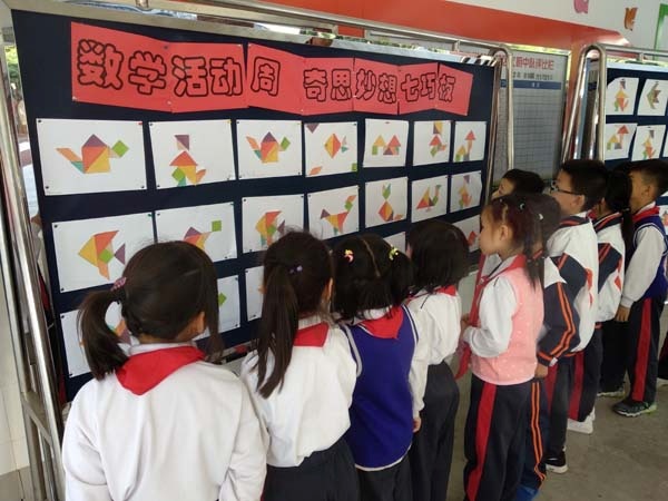 據(jù)悉,該校還根據(jù)各年級(jí)的學(xué)生特點(diǎn),在數(shù)學(xué)周里設(shè)計(jì)了創(chuàng)意拼搭、奇思妙想七巧板、用手估測(cè)長(zhǎng)度、24點(diǎn)大王、數(shù)獨(dú)等形式多樣的趣味數(shù)學(xué)活動(dòng)。一年級(jí)的孩子開(kāi)展創(chuàng)意拼搭活動(dòng),尋找生活中的物品,進(jìn)行有趣的拼搭,同時(shí)感受長(zhǎng)方體、正方體、圓柱、球四個(gè)物體的特征,加深對(duì)物體特征的理解。二年級(jí)的孩子開(kāi)展奇思妙想七巧板活動(dòng),每人準(zhǔn)備一副七巧板,拼出指定的有趣圖案,最后按拼法在輪廓圖上用尺子鉛筆進(jìn)行畫分、分解。通過(guò)七巧板的拼擺、繪制,孩子了解到七巧板這種古老的數(shù)學(xué)拼圖游戲,體會(huì)了數(shù)學(xué)的無(wú)窮樂(lè)趣。此外,每天課間活動(dòng)時(shí),三年級(jí)的孩子們則用手估測(cè)出1厘米、1分米、1米或一些圖形的長(zhǎng)度,積累了用“身體尺”測(cè)量活動(dòng)經(jīng)驗(yàn),培養(yǎng)孩子們的創(chuàng)新精神和應(yīng)用意識(shí)。四、五年級(jí)的孩子們開(kāi)展了“24點(diǎn)速算”趣味比賽活動(dòng),活動(dòng)中采取了個(gè)人擂主賽,采用積分淘汰制,比賽中凸顯了小選手的靈活機(jī)智;團(tuán)體賽中,各個(gè)代表隊(duì)隊(duì)員群策群力,在體驗(yàn)方法多樣化中彰顯了智慧。六年級(jí)的孩子開(kāi)展了“數(shù)獨(dú)等你來(lái)玩”的活動(dòng),題目從四宮到九宮,難度逐漸增加,孩子們沉著冷靜,積極思考,認(rèn)真作答,安靜的賽場(chǎng)緊張而有序。各項(xiàng)比賽結(jié)束后,經(jīng)過(guò)老師們的認(rèn)真篩選,本次活動(dòng)周的一、二等獎(jiǎng)新鮮出爐!