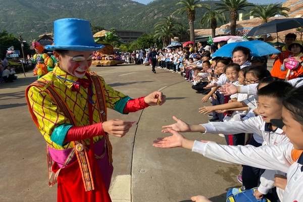 一路歡歌,一路笑語(yǔ)。在帶隊(duì)老師的組織下,有的班級(jí)在車廂里開展了朗誦比賽,有的班級(jí)進(jìn)行小歌星才藝展示,有的班級(jí)則來個(gè)集體大合唱活動(dòng)。車上洋溢著同學(xué)們的歡聲笑語(yǔ),大家都對(duì)本次研學(xué)活動(dòng)充滿了期盼。經(jīng)過一個(gè)多小時(shí)的車程,就到達(dá)了同學(xué)們翹首以盼的目的地——珠海長(zhǎng)隆汪洋王國(guó)。