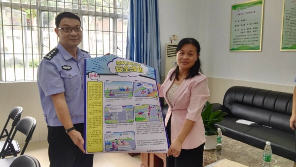 為幫助學校做好交通安全宣傳工作,在本次調研中,饒科長一行人還向西廠小學贈送交通安全宣傳海報,切實做到了解民難、暖民心,辦實事。當饒科長一行人知道西廠小學即將要召開岐江校區(qū)和西廠校區(qū)家長會時,饒科長也不忘提示學校領導要提醒家長在接送小孩的過程中,要注意宿酒問題和國慶假期安全出行。