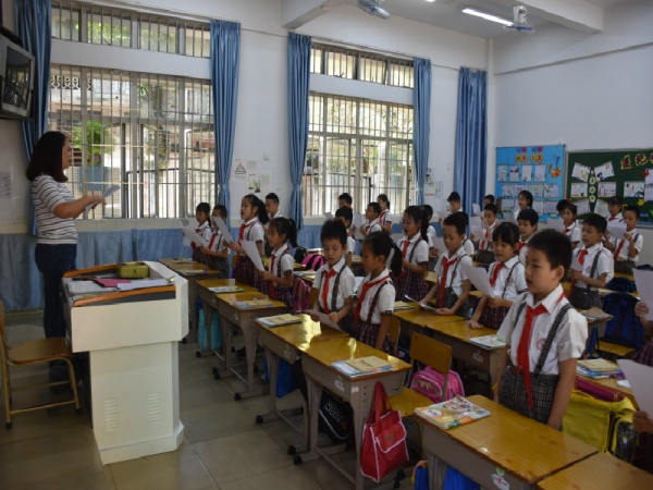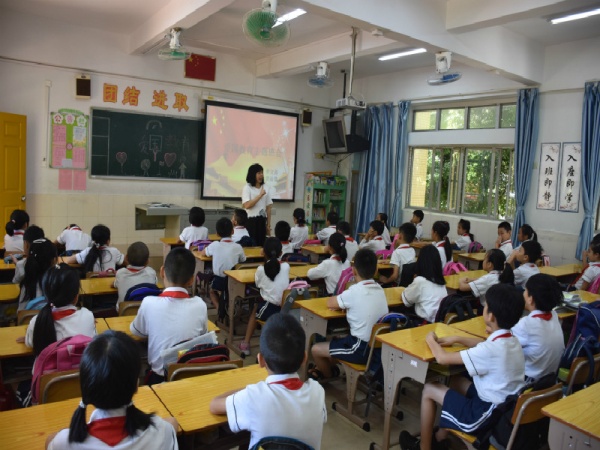 升旗儀式結(jié)束后,各班孩子在班主任的組織帶領(lǐng)下,在課室繼續(xù)進(jìn)行《我和我的祖國(guó)》主題班會(huì)課。有的班級(jí)舉辦“迎國(guó)慶朗誦會(huì)”,抒發(fā)了他們對(duì)祖國(guó)的贊美之情,樹(shù)立了報(bào)效祖國(guó)的崇高志向;有的班級(jí)開(kāi)展“祖國(guó)知識(shí)競(jìng)答”活動(dòng),寓學(xué)于樂(lè),讓學(xué)生在趣味競(jìng)答中更了解了祖國(guó),從而加深了對(duì)祖國(guó)的認(rèn)識(shí)與熱愛(ài);有的高年級(jí)班會(huì)由學(xué)生主持,同學(xué)們結(jié)合自身實(shí)例,表達(dá)愛(ài)國(guó)熱情,講中國(guó)故事,夸中國(guó)名人,增強(qiáng)了民族自尊心和自豪感。同時(shí),參與活動(dòng)的教師,身心也受到洗禮。