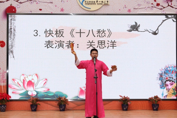 緊接著,中山市文學(xué)藝術(shù)界聯(lián)合會(huì)和中山市戲劇家協(xié)會(huì)帶來了原創(chuàng)戲劇曲藝作品巡演?!段沂歉柰酢?、《掉的就是這個(gè)孩》、《啞巴》等5個(gè)相聲,引得全校師生捧腹大笑、連連喝彩。