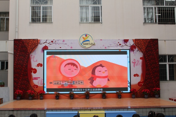 這一天,不僅是石岐第一城接受“科普校園e站”授牌的一天,也是全校師生一起辭舊迎新,慶賀元旦的日子。李慧冰校長對(duì)過去一年學(xué)校的工作做了總結(jié)和肯定,鼓勵(lì)大家2020年繼續(xù)努力,越過越好!在熱鬧的音樂聲中,石岐第一城小學(xué)兩位校外輔導(dǎo)員——來自中山電視臺(tái)的陳劍祥、巢志高老師和梁校長一起為學(xué)校老師送上一份美好的禮物——“?!弊中履昴隁v。