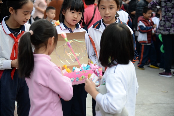 下午,德育處與大隊(duì)部繼續(xù)組織師生進(jìn)行愛(ài)心義賣活動(dòng)。學(xué)生和家長(zhǎng)按照規(guī)劃好的場(chǎng)地把班級(jí)攤位布置得美輪美奐,琳瑯滿目的商品、此起彼伏的叫賣聲、各種精心設(shè)計(jì)的廣告牌讓校園頓時(shí)化身賣場(chǎng),同學(xué)和家長(zhǎng)義工們有的在積極地叫賣,有的興奮地奔走在各個(gè)攤位之間,欣賞,挑選,討價(jià)還價(jià),本次活動(dòng)成功吸引了全體師生的熱情參與,許多老師、家長(zhǎng)也加入到吆喝的行列,為孩子們的義賣貢獻(xiàn)自己的一份力量。放眼望去,每個(gè)攤位前都圍得水泄不通,愛(ài)心化作一股暖流,流淌在校園的角角落落,讓這個(gè)寒冬更加溫暖!
