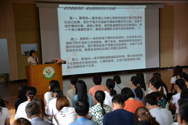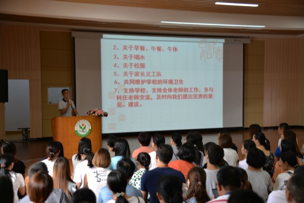 與此同時(shí),學(xué)校還組織了新生家長(zhǎng)培訓(xùn)會(huì)。首先,戴織校長(zhǎng)介紹了學(xué)校蓬勃的發(fā)展進(jìn)程、優(yōu)秀的行政隊(duì)伍、先進(jìn)的教育理念、雄厚的師資力量、特色校本課程與豐碩的育人成果,并詳細(xì)指導(dǎo)家長(zhǎng)如何幫助孩子做好入學(xué)前的準(zhǔn)備,在學(xué)習(xí)、生活習(xí)慣等方面養(yǎng)成良好的習(xí)慣。隨后,李振華副校長(zhǎng)、陳文卿主任也針對(duì)學(xué)校常規(guī)安排進(jìn)行了細(xì)致的介紹。從幼小銜接的專題講座中,家長(zhǎng)們提高了對(duì)教育的認(rèn)識(shí),學(xué)到了實(shí)用的教育知識(shí)和方法,為孩子們新學(xué)期的學(xué)習(xí)與成長(zhǎng)夯實(shí)了基礎(chǔ)。
