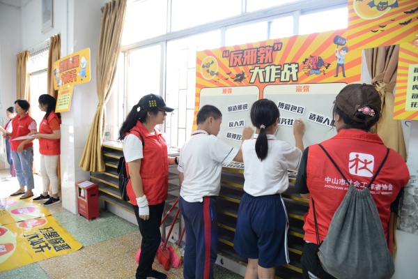學(xué)校邀請(qǐng)了中山市社會(huì)工作者協(xié)會(huì)協(xié)助開展普法活動(dòng),四年級(jí)全體師生積極參與。工作人員根據(jù)小學(xué)生的心理發(fā)展特征告誡學(xué)生抵制不良行為,遠(yuǎn)離違法犯罪,樹立正確的世界觀、人生觀和價(jià)值觀,現(xiàn)場(chǎng)氣氛活躍。活動(dòng)內(nèi)容主要有兩個(gè)環(huán)節(jié),一是觀看3個(gè)“憲法在我心中”和2個(gè)反邪教主題宣傳教育視頻,這兩個(gè)專題各有兩次有獎(jiǎng)問答。答對(duì)后學(xué)生可以得到一份神秘小禮品。第二個(gè)環(huán)節(jié)是進(jìn)行法治嘉年華游戲。本次法治嘉年華總共有5個(gè)游戲,分別是“反邪教大作戰(zhàn)”、“打擊犯罪 人人有責(zé)”、“法律猜猜猜”、“法治大轉(zhuǎn)輪”、“掃黑除惡大沖關(guān)”。通過游戲的方式進(jìn)行法律知識(shí)問答競(jìng)賽,既考驗(yàn)學(xué)生的法律知識(shí),也考驗(yàn)班級(jí)團(tuán)隊(duì)協(xié)作能力。