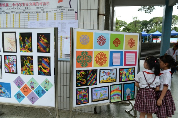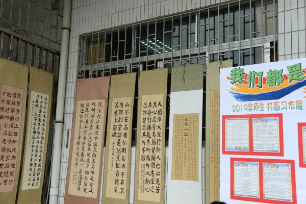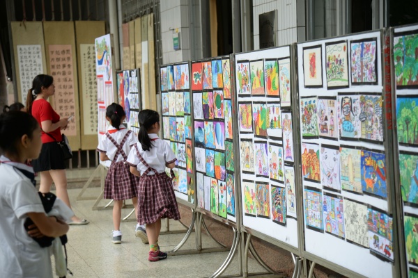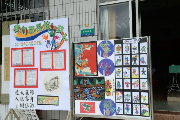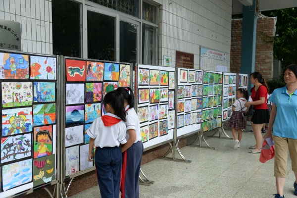 本次書畫展,由美術(shù)科組精心策劃和布置,展示了師生良好的藝術(shù)素養(yǎng)和積極向上的精神風(fēng)貌。展覽作品涵蓋水粉、彩鉛、兒童畫、手工畫、書法等不同類型作品,每幅作品都真切地體現(xiàn)師生對美的追求、對藝術(shù)的探索和對美好生活的向往。書法蘊含著中國傳統(tǒng)文化的精髓,承載著中國文化的審美志趣。書畫展上,展示了戴織、古運迎、陳月英、何雪芳、李桂華、劉燕青、肖湘霞、胡竹軍等部分教師的優(yōu)秀書畫作品。書畫習(xí)作活動的開展,為教師們展現(xiàn)才藝、相互學(xué)習(xí)、共同成長提供了良好的平臺,有效地促進了教師對教學(xué)的思考。其次,展出的學(xué)生作品都來自平時的美術(shù)課堂和社團成果,不同的年齡段學(xué)生藝術(shù)表現(xiàn)手法也不同。學(xué)生作品展板上,一件件風(fēng)格迥異的作品皆反映出學(xué)生內(nèi)心奇異世界。孩子們是在用心靈作畫,以獨特的視角再現(xiàn)美好生活;用情感寫意,以純真的熱情展現(xiàn)個人風(fēng)采。