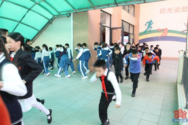 為了模擬真實(shí)的火災(zāi)場景,全校師生于下午2:45分齊聚校體育館觀看一部勵(lì)志電影《奔跑的少年》。電影的內(nèi)容很貼近孩子們的現(xiàn)實(shí)生活,孩子們也正好需要這樣的勵(lì)志教育,再加上故事情節(jié)曲折離奇、趣味無窮,所有的師生完全沉浸在電影中,完全和電影融為了一體。正在這個(gè)時(shí)候應(yīng)急警報(bào)突然響起,全場一陣騷動,但很快就平息了下來;緊接著靠近幾個(gè)出口的班級在老師的指揮下,用手掩住了口鼻,低著頭,弓著腰迅速地向校操場疏散開去。離通道較遠(yuǎn)的,緊跟著人流也迅速向操場移去。全校師生兩千多人,一個(gè)一個(gè)掩鼻、捂嘴警覺無比,耳邊只有刺耳的警報(bào)聲,前面只有快速移動的人群,沒有一個(gè)人往后看,這真是一個(gè)奇跡!人群到達(dá)操場后自行分班級按照平時(shí)的集會隊(duì)列整齊有序地排好。當(dāng)最后一個(gè)班級到達(dá)操場時(shí),記時(shí)員向負(fù)責(zé)演練的總負(fù)責(zé)人崔士強(qiáng)主任報(bào)告:總共用時(shí)4分32秒。
