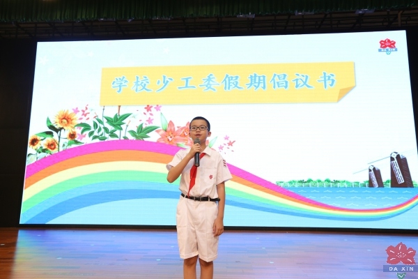 在結(jié)業(yè)典禮上,學校少工委代表梁智勇同學倡議全校同學豐富自己的暑假生活,注意安全,做一個德、智、美、勞全面發(fā)展的好學生。接著,學校法制副校長李所長也給同學們上了一節(jié)全面的法制與安全教育課。有諄諄的教導,有生動的案例,形象、生動,讓學生刻骨銘心。