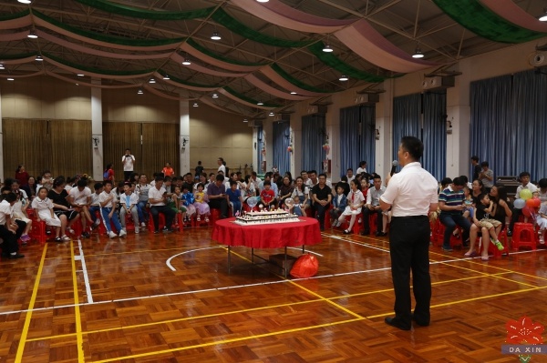 一個小時左右,隨著音樂聲的逐漸減弱,仿佛有一支無聲的指揮棒在指揮,所有的孩子和家長們都圍坐在兩層大大的蛋糕旁,然后由主持兩校全面工作的梁麗文副校長為孩子們獻上節(jié)日的賀詞,并叮囑小朋友們要知恩、感恩,心存對父母親人的感激之情。繼而又熱情洋溢地祝福孩子們節(jié)日快樂,珍惜童年的美好時光。接著兩校行政和孩子們一起唱生日歌、切蛋糕,讓現(xiàn)場的歡樂氣氛推上了另一個高潮。并親手為孩子們送上節(jié)日的禮物,收到禮物的小朋友們臉上寫滿了歡樂與幸福。
