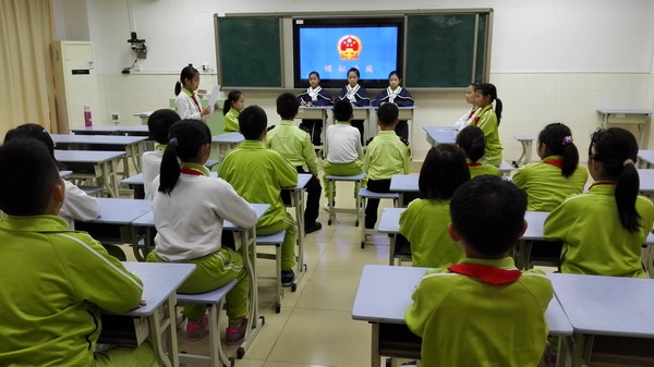 憲法宣傳周期間,學(xué)校舉行了憲法宣傳教育啟動儀式,召開全體教師動員大會,要求全體教師從思想上高度重視憲法知識的普及和宣傳,做好學(xué)生學(xué)法、知法、守法、護(hù)法的帶頭人。學(xué)校利用集會、黑板報和LED電子屏等途徑積極宣傳憲法知識,營造了濃郁的法治宣傳氛圍,打造法治校園環(huán)境。學(xué)校還依托《道德與法治》等相關(guān)課程,著力加強(qiáng)體驗(yàn)式實(shí)踐式教學(xué),切實(shí)提升憲法教育的針對性和實(shí)效性;學(xué)校在高年級開展了模擬法庭活動,進(jìn)一步推動了憲法教育,著力培育了學(xué)習(xí)憲法、尊崇憲法的校園法治文化;同學(xué)們回家和爸爸媽媽一起進(jìn)行“學(xué)憲法講憲法”網(wǎng)上學(xué)習(xí)活動,讓憲法走進(jìn)千家萬戶,提高全民的法制意識。