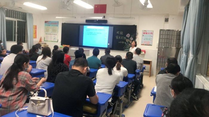 由于疫情原因,家長(zhǎng)會(huì)在各班教室召開(kāi)。雖然家長(zhǎng)會(huì)正式開(kāi)始的時(shí)間是7點(diǎn),但很多家長(zhǎng)六點(diǎn)半不到已經(jīng)迫不及待地進(jìn)入教室,跟班主任進(jìn)行交流溝通,了解孩子情況。