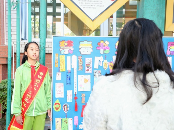 檢查組在該校一樓長(zhǎng)廊參觀了學(xué)校禁毒教育成果展,現(xiàn)場(chǎng)展示的作品有禁毒手抄報(bào)、禁毒書畫作品、禁毒創(chuàng)意作品等,每個(gè)展板前均有一名少先隊(duì)隊(duì)干負(fù)責(zé)講解。小講解員們細(xì)致地向檢查組講解了各項(xiàng)活動(dòng)的開(kāi)展情況及成果。隨后,檢查組到三樓圖書館參觀,陳澤湖校長(zhǎng)匯報(bào)了圖書館的建設(shè)和使用情況,并特別展示了禁毒教育相關(guān)書籍及相關(guān)硬件設(shè)備。接著,檢查組一行落座四樓會(huì)議室,聽(tīng)取該校以《手拉手遠(yuǎn)離毒品,齊參與共筑防毒長(zhǎng)城》為主題的工作匯報(bào),陳肖影副校長(zhǎng)從有保障、有特色、有成果三方面展開(kāi)詳細(xì)匯報(bào),介紹了學(xué)?!岸嘀Ы逃?duì)伍齊發(fā)力”的禁毒教育師資建設(shè)、豐富多彩的禁毒活動(dòng)及“師生家長(zhǎng)同受益”的禁毒教育成果。