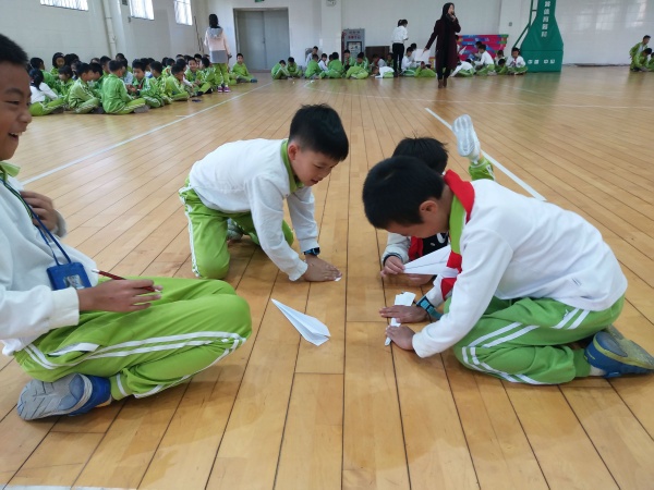 本次紙飛機(jī)比賽使用標(biāo)準(zhǔn)A4紙制作模型,紙張能折疊、適當(dāng)剪裁、膠粘、涂色,但不能懸掛重物或者填裝其他物品。賽前,在老師和家長(zhǎng)的指導(dǎo)下,同學(xué)們已經(jīng)研究了紙飛機(jī)的飛行原理,進(jìn)行過無數(shù)次的改進(jìn)和試飛,為的就是讓手中的飛機(jī)能飛得更遠(yuǎn)更高。早在上周,各班已經(jīng)在班上開展了紙飛機(jī)比賽預(yù)賽,并且選出了四名參賽選手,經(jīng)過一周的探索與改進(jìn),各班參賽選手帶著滿滿的自信,踏入了體育館。