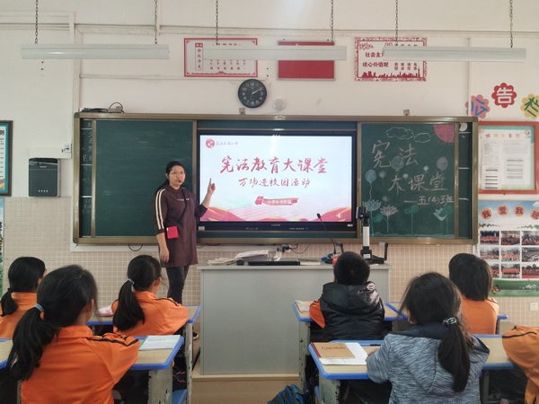 為了激發(fā)學(xué)生的學(xué)法熱情,播撒法治信仰的種子,讓學(xué)生認(rèn)識(shí)了解憲法、尊崇維護(hù)憲法。2019年12月2日,開發(fā)區(qū)中心小學(xué)組織開展了“憲法教育大課堂”主題班會(huì)活動(dòng)。各班有序組織,班主任認(rèn)真?zhèn)湔n,集合學(xué)生年齡特點(diǎn),圍繞“尊崇憲法、學(xué)習(xí)憲法、遵守憲法、維護(hù)憲法、運(yùn)用憲法”等方面組織落實(shí)班會(huì)課內(nèi)容。