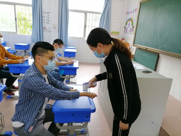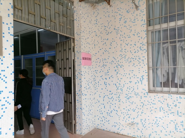 演練現(xiàn)場,根據(jù)上級各部門的防控工作要求,在校門口設(shè)置了3條入校通道,師生們間隔一米進入校門,值日教師用額溫槍逐一測量體溫。如發(fā)現(xiàn)有發(fā)熱的學(xué)生,現(xiàn)場有家長接送,讓家長直接帶離學(xué)校并按照指引就診;如現(xiàn)場無家長接送,由值日組長安排學(xué)生到健康觀察室,并立即通知家長接回去就診。