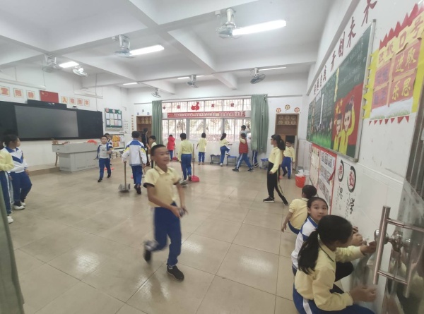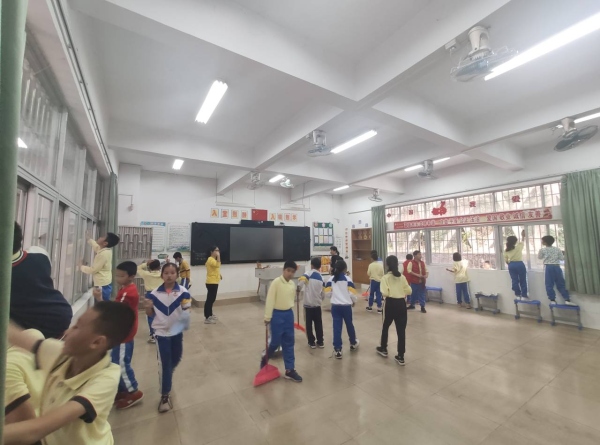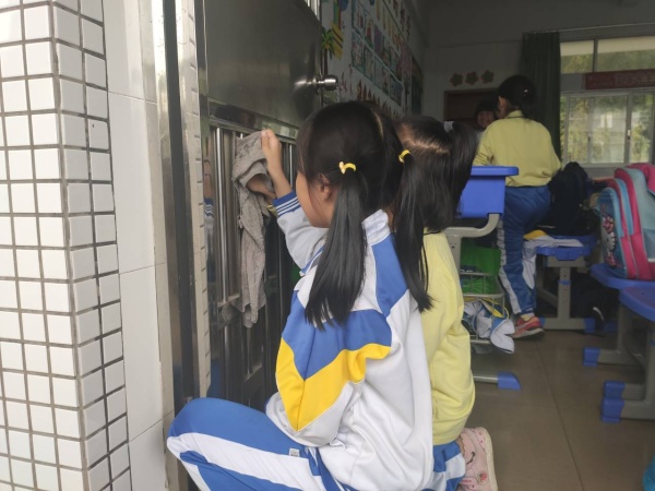 活動中,同學們在老師的指導下,全面打掃教室各個角落,清理地面上的污漬,掃除教室墻面上小紙片和雜物,清除整理圖書角、講臺上的粉塵雜物,擦洗黑板、玻璃窗臺和墻腳的污漬。校園的每個角落都能看到同學們勞動的身影,到處都是熱火朝天的勞動景象。