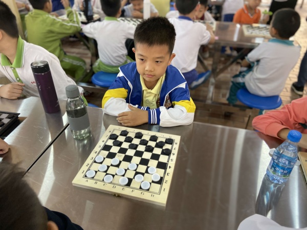 本次智力運(yùn)動會包括圍棋、國際象棋、中國象棋、國際跳棋4個比賽項目,開發(fā)區(qū)三小每個組別均派出了4名同學(xué),在輔導(dǎo)老師冼燕飛的帶領(lǐng)下,參加不同棋種不同組別的比賽。