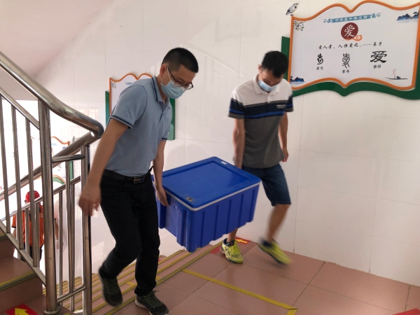 8時(shí)整,在德育處與教導(dǎo)處共同精心安排下,各班級(jí)觀看”復(fù)學(xué)第一課“,學(xué)習(xí)”疫情防控期間在校一日生活指南“。他們?cè)诶蠋煹慕M織下舉行了簡(jiǎn)單而莊嚴(yán)的升旗儀式。接著,老師們圍繞“科學(xué)防控”“心理疏導(dǎo)”“擔(dān)當(dāng)成長(zhǎng)”等主題進(jìn)行授課……上午課程結(jié)束后,由男教師組成的“送餐志愿服務(wù)隊(duì)”忙而不亂,為四、六年級(jí)孩子送餐;五年級(jí)跟隨班主任排隊(duì)到飯?zhí)镁筒汀?/p>