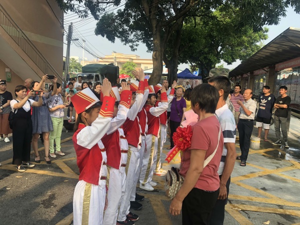 9月12日上午,開發(fā)區(qū)第五小學(xué)鼓號隊(duì)?wèi)?yīng)社區(qū)邀請參加入伍新兵歡送活動。在大隊(duì)總輔導(dǎo)員阮結(jié)連等老師的帶領(lǐng)下,鼓號隊(duì)的全體隊(duì)員兵分四路,先后參加了海傍、灰爐、馬安、茂生的新兵入伍歡送儀式。