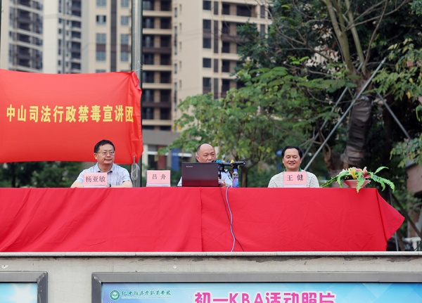 2018年4月12日下午,陽光明媚,春意盎然。在這個美好的日子里,紀中雅居樂凱茵學(xué)校的操場上,1800多名紀雅學(xué)子正在認真聆聽本學(xué)期的第一次法制教育專題講座,這也是四博課程體系中,法制安全課程的重要一課。會上,中山司法行政禁毒宣講團成員,中山市司法局黨委委員、中山市強制戒毒所所長呂舟對全校師生作了“正確認識毒品,堅決拒絕毒品,爭做新時代陽光青年”的專題講座。中山市紀中雅居樂凱茵學(xué)校校長王健、副校長楊亞敏出席,活動由初二年級德育副主任李林峰主持。