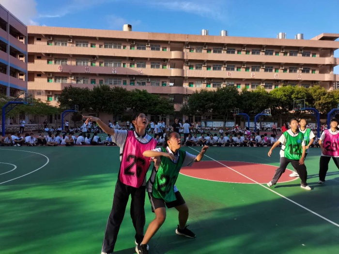 9月21日下午,夕柔風(fēng)輕,風(fēng)煙裊裊。而民眾中學(xué)籃球場上確是人聲鼎沸,加油聲、吶喊聲不絕于耳。民眾中學(xué)初二年級籃球淘汰賽正激烈進(jìn)行著。此次比賽采取上、下半場15分鐘包干制,上半場進(jìn)行女子籃球比賽,下半場進(jìn)行男子籃球比賽,采用比分淘汰制的形式進(jìn)行比賽,一共進(jìn)行四輪!各個班級身著紅藍(lán)綠黃等各色隊服在彼此的賽場上團(tuán)結(jié)互助,掩護(hù)與擋拆,奔跑回轉(zhuǎn),突入內(nèi)線,精準(zhǔn)投射,精彩紛呈,簡直就是一場場視覺盛宴。場上一溜溜嚴(yán)整的啦啦隊員更是鼓勁聲,歡呼聲不絕。在比賽中巾幗不讓須眉,女子隊員握球,控球投籃風(fēng)姿瀟灑,英氣逼人!此次比賽各個球隊都認(rèn)真對待,面對問題,球隊也積極應(yīng)變,迅速調(diào)整,各班比分交替上升。但強中自有強中手,有比賽就有勝負(fù),最終7、2、3、8、11等6支球隊成功晉級半決賽。