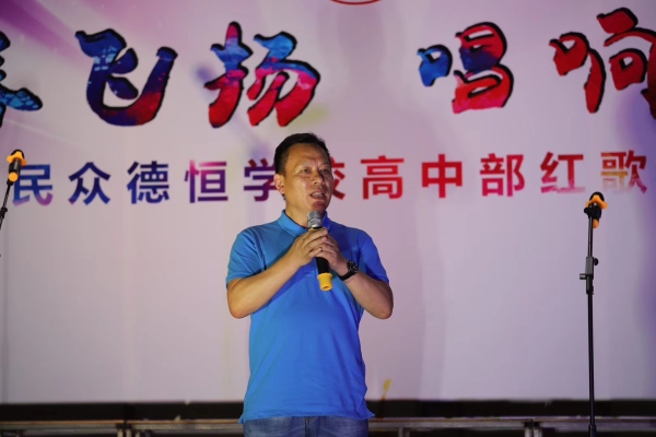 比賽結(jié)束后,高中部宋慶忠校長(zhǎng)對(duì)此次活動(dòng)做了點(diǎn)評(píng),宋校長(zhǎng)首先高度贊揚(yáng)同學(xué)的精神面貌和激情的表演,指出音樂(lè)是落實(shí)美育的主要途徑,積極向上的音樂(lè)作品可以鼓舞斗志,激勵(lì)人上進(jìn),革命歌曲是一筆寶貴的財(cái)富,同時(shí)還教導(dǎo)同學(xué)們,要有一顆愛(ài)國(guó)的心,傳承革命精神 ,要樹立遠(yuǎn)大的目標(biāo)。對(duì)于本次科技藝術(shù)節(jié),宋校長(zhǎng)也號(hào)召全體同學(xué)積極參加,在舞臺(tái)上更好的展示自己。賽出我們德恒學(xué)子風(fēng)采,展現(xiàn)我們德恒學(xué)校的科技藝術(shù)特色!用行動(dòng)點(diǎn)燃科技文化的熊熊火炬,用滿腔的熱情,詮釋了青年學(xué)子的愛(ài)國(guó)情懷。