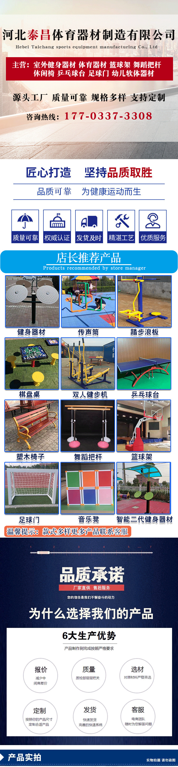 伴隨2018年健身運(yùn)動(dòng)的興起,掀起了一股健身熱潮,泰昌體育生產(chǎn)的室內(nèi)外健身器材系列、乒乓球臺(tái)系列、中小學(xué)體育器材,用于廣場(chǎng)、公園綠地、社區(qū)、企業(yè)、敬老院、新農(nóng)村建設(shè)、文化大院等場(chǎng)所。