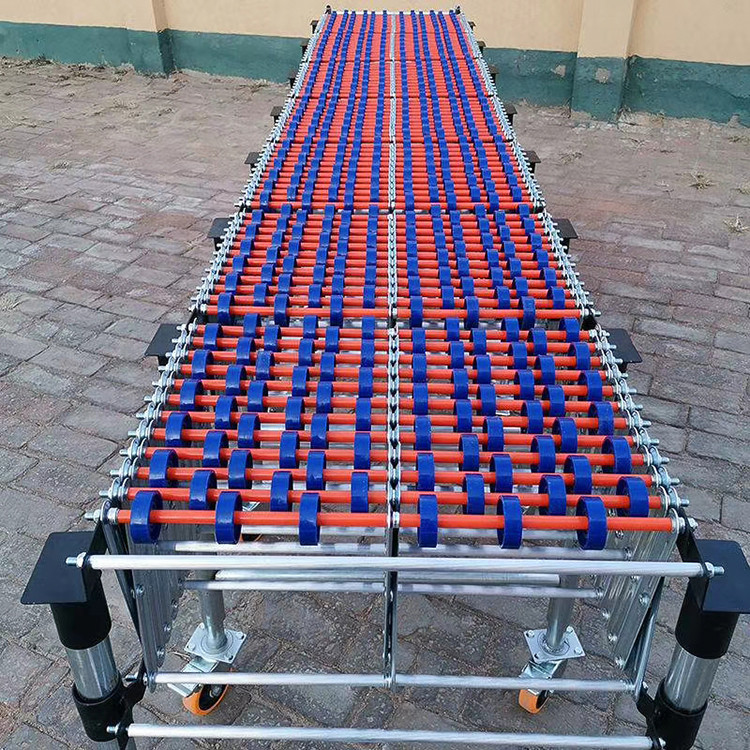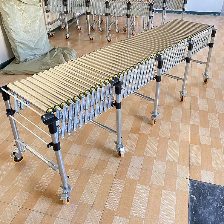 伸縮式輥道輸送機卸貨神器它是利用可伸展的組件做機架的輸送機。