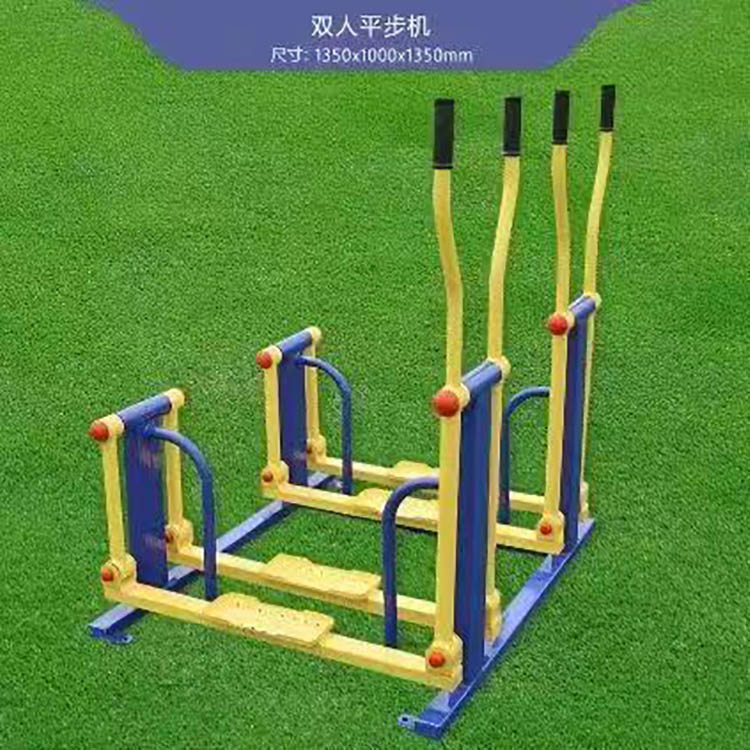漫步機(jī)、雙人漫步機(jī)、告示牌、橢圓機(jī)、跑步機(jī)、雙人坐凳、三人轉(zhuǎn)腰器、二人轉(zhuǎn)腰器、雙外浪板、平步機(jī)、推揉器、雙人大轉(zhuǎn)輪、腰背按摩器、雙人坐拉、雙人坐推、劃船器、單柱雙杠、引體架、腹肌板、伸腰伸背架、蹺蹺板、立式健騎機(jī)、臂力訓(xùn)練器、上肢牽引器、棋牌桌、四位壓腿器、腿部按摩器、雙杠、單杠、天梯等。