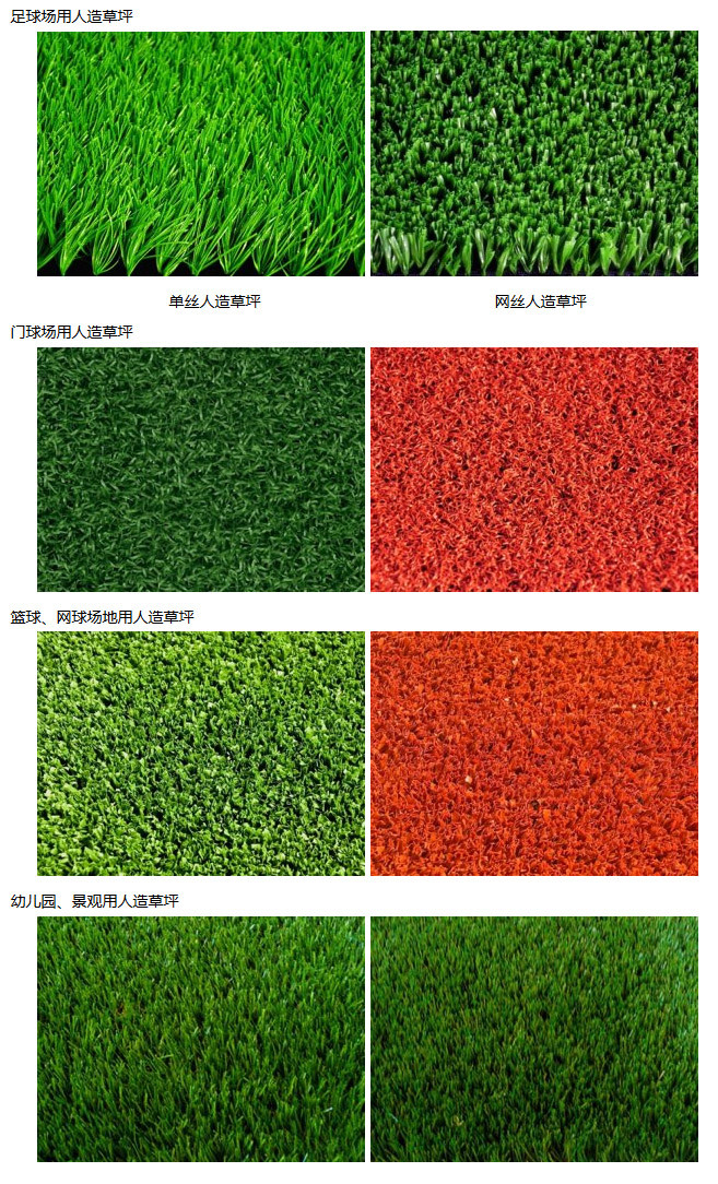 人造草坪是新一代運(yùn)動(dòng)場(chǎng)地良好的地面材料,在外廣泛使用,目前在各地蓬勃興起,應(yīng)用廣闊。人造草坪由纖維織成,它具有、耐紫外線、舒適、平坦均勻、耐低溫、防滑、彈性好、場(chǎng)地硬度調(diào)節(jié)適當(dāng)、全天候使用和清潔方便、使用壽命長(zhǎng),并有良好的透氣性和透水性。人造草坪有適合于運(yùn)動(dòng)場(chǎng)的品種,如足球場(chǎng)、網(wǎng)球場(chǎng)、籃球場(chǎng)、排球場(chǎng)、門球場(chǎng)、跑道等。