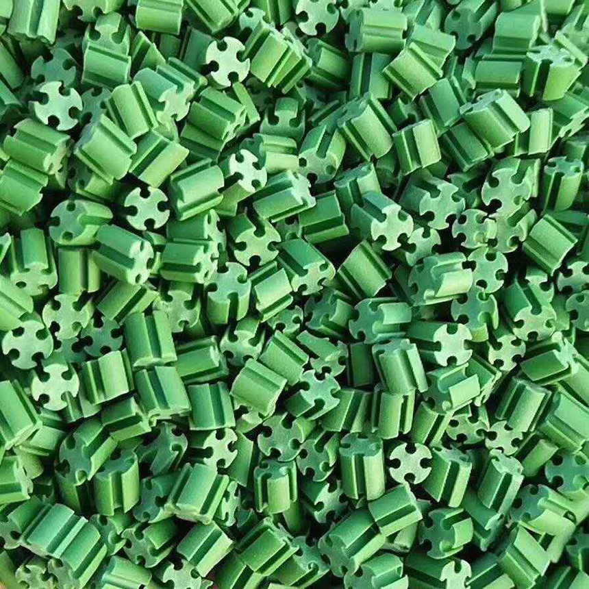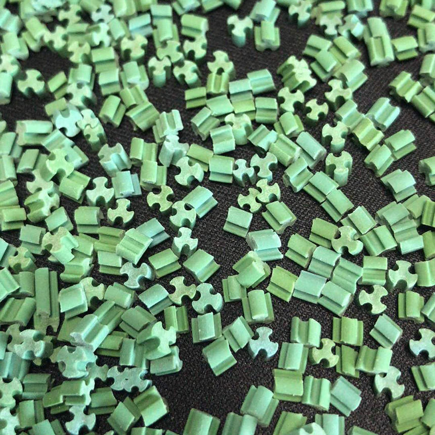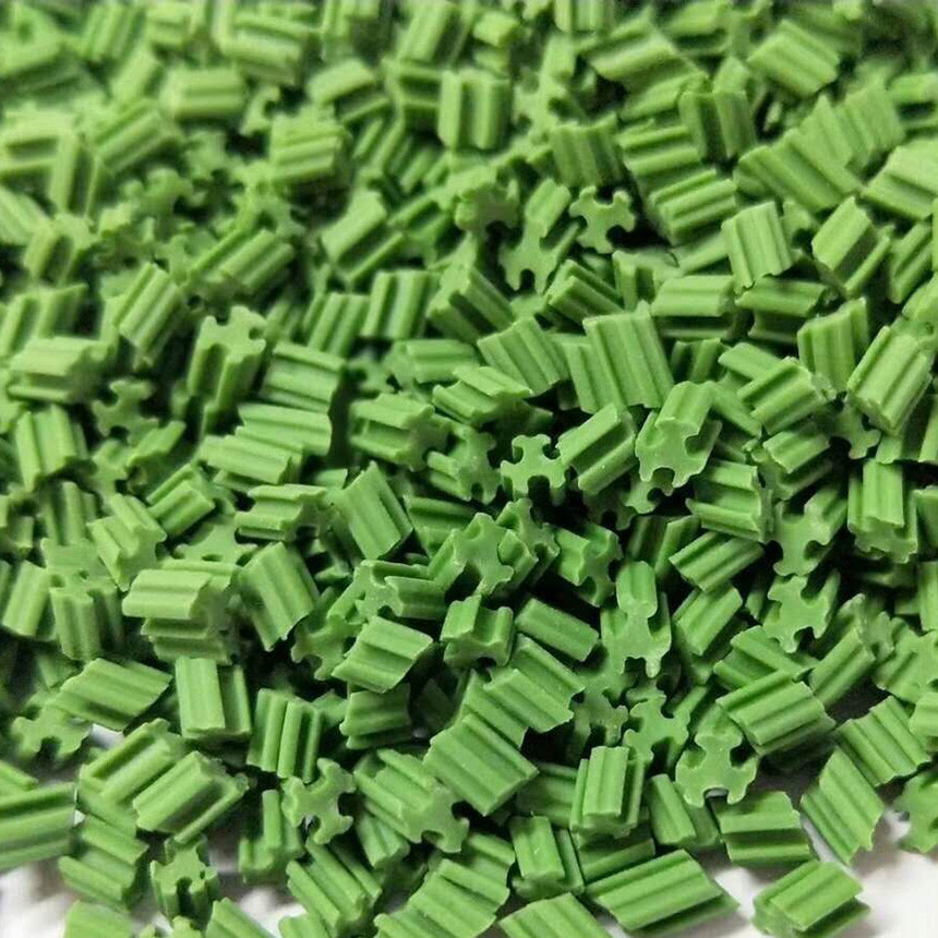 TPE 環(huán)保填充顆粒,非硫化物,屬于熱塑性彈性體,具環(huán)保、耐磨性強(qiáng)且擁有高回彈力,無毒無氣味,耐候性能優(yōu)異,美觀且耐高溫(初始軟化溫度達(dá)到 130°)等特點(diǎn),是人造草坪填充的好的選擇。它采用擠出成型工藝,擁有破碎剪切顆粒無法比擬的堆積密度優(yōu)勢。簡單的說來就是越少的顆粒用量可以堆積越多厚度。