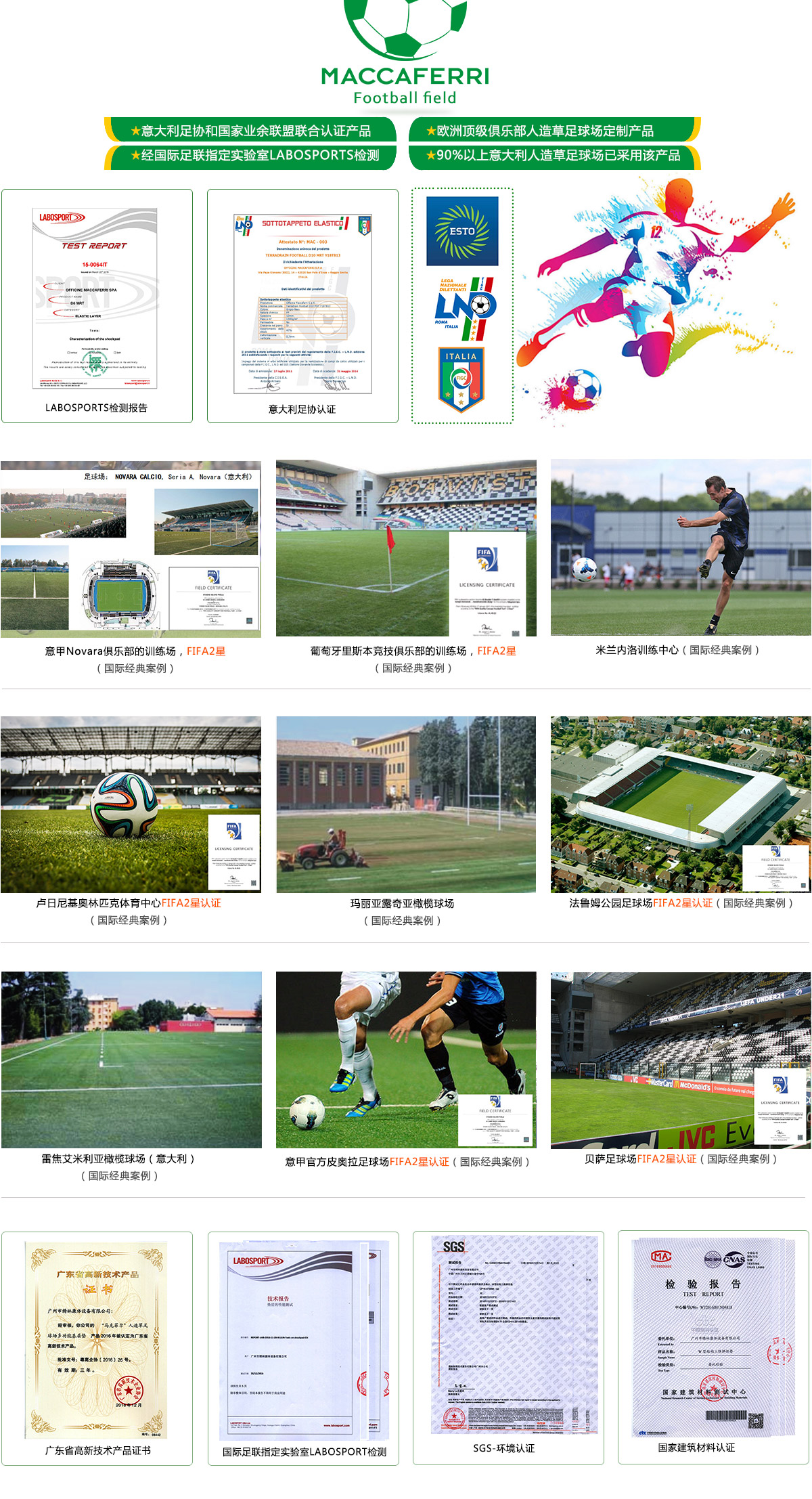 已先后通過國際足聯(lián)(FIFA)、意大利足協(xié)(F.I.G.CLND)和意大利業(yè)余足球聯(lián)盟等機構(gòu)認證。