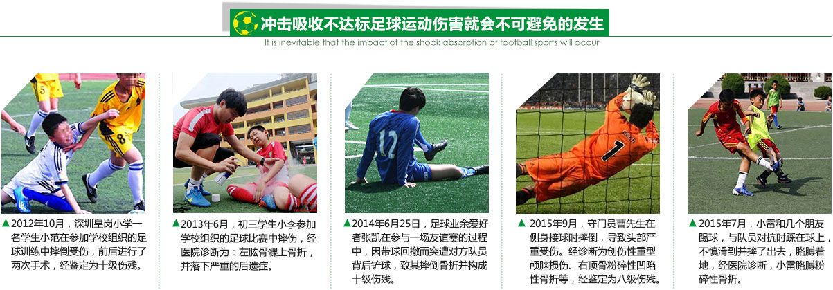 (2)該標準主要是基于足球運動的特點,第一是比賽時間長,對運動員關(guān)節(jié)和脊椎的損傷會更大;第二是高速奔跑、對抗激烈,必然會導致奔跑摔跤、沖撞倒地、搶跳落地等,造成球員摔傷。