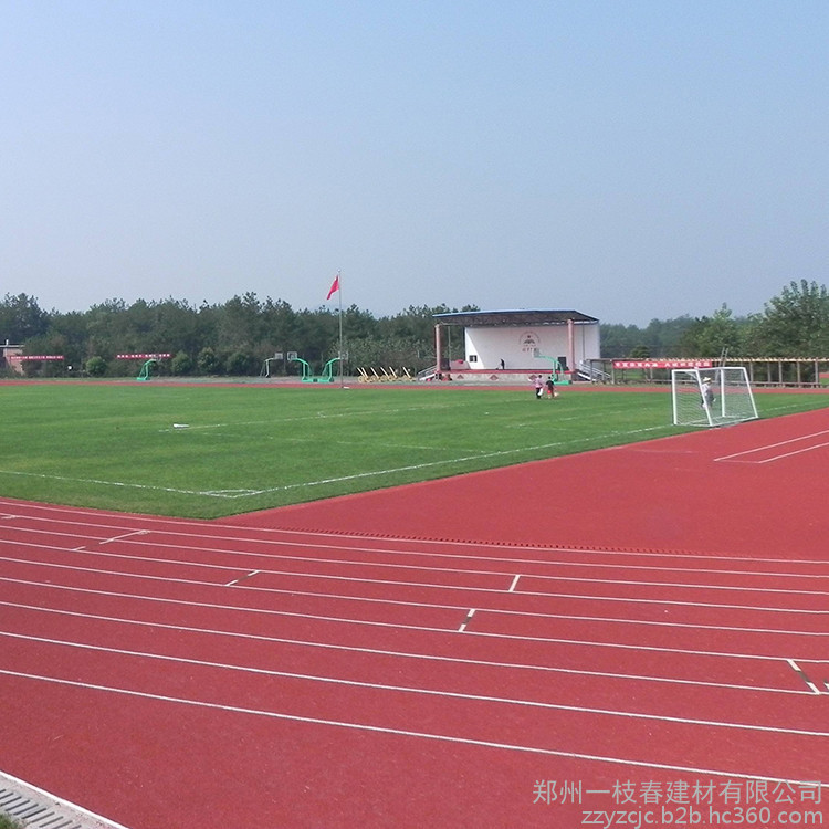 4、混合型塑膠跑道是PU與黑色橡膠顆粒按一定比例混合而成跑道系統(tǒng)。材料運到現(xiàn)場按一定比例混合,加入催化劑攪拌均勻,攤鋪,常溫硫化成型,該面層是現(xiàn)時有標準的塑膠面層材料,主要用于專業(yè)比賽用場地等。