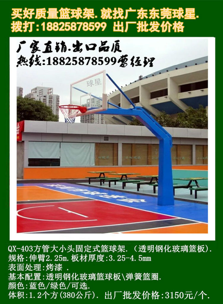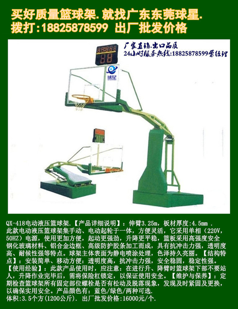 籃球架系列產(chǎn)品顏色為:綠色、藍(lán)色、可選.可根據(jù)用戶需求改變顏色,產(chǎn)品在沒有特別說明的前提下默認(rèn)為根據(jù)庫存隨機(jī)從綠、藍(lán)兩種顏色中隨機(jī)抽取發(fā)貨。