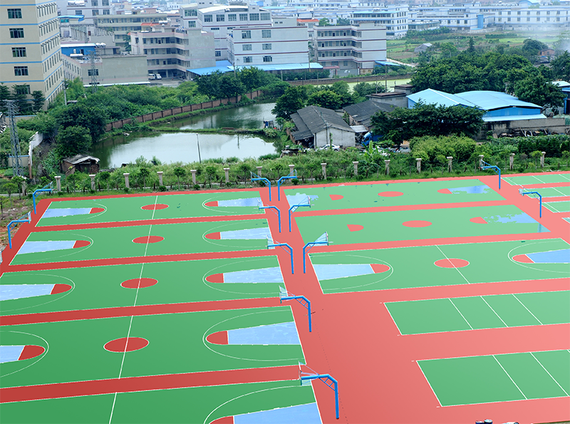 廣州市財政學校硅PU籃球場10片、網(wǎng)球場2片、羽毛球場9片