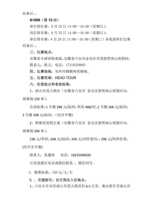 2019年全國青少年網(wǎng)球積分排名系列賽(六安站)補充通知