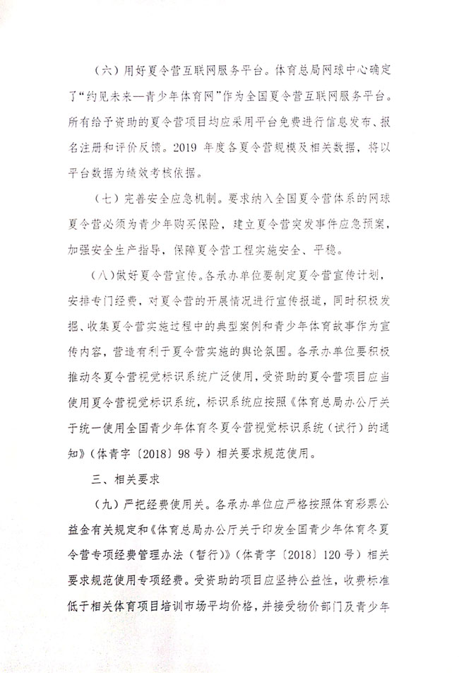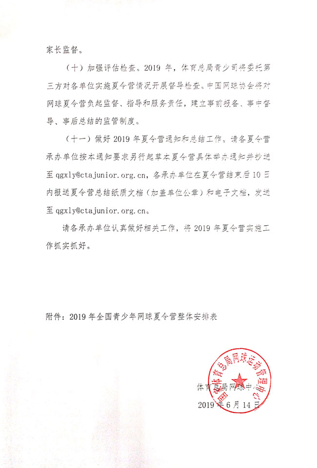 關(guān)于做好2019年全國(guó)青少年網(wǎng)球夏令營(yíng)相關(guān)工作的通知