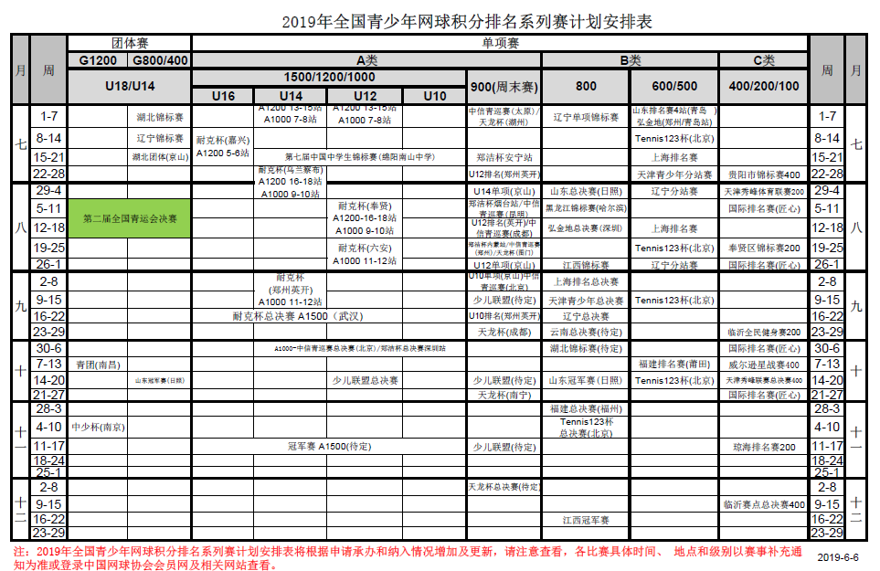 2019年全國青少年網(wǎng)球積分排名系列賽競賽計(jì)劃安排表