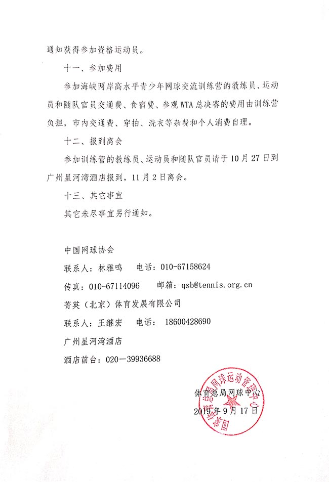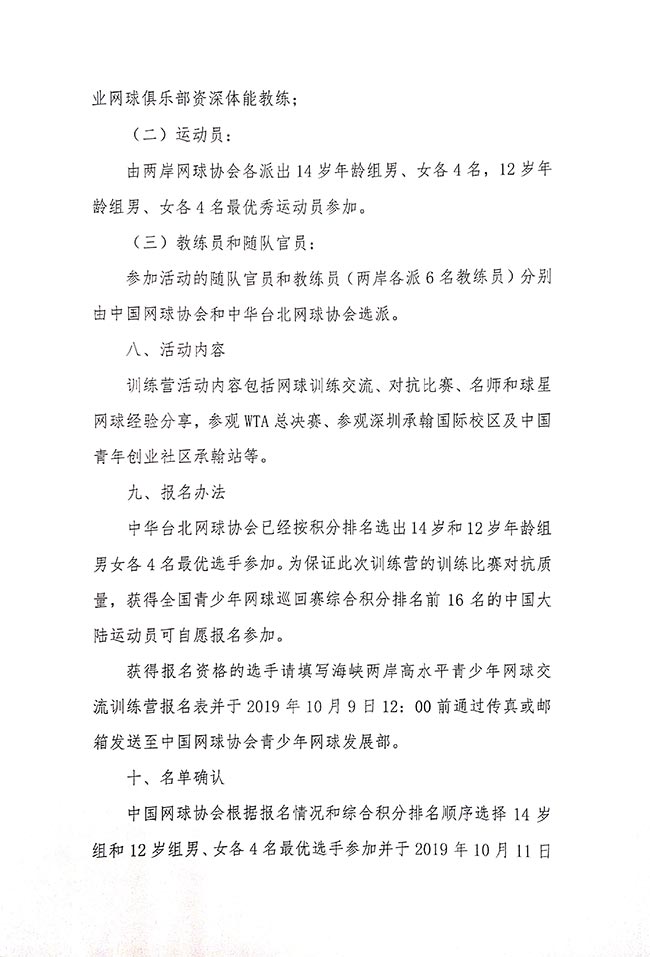 體育總局網(wǎng)球中心關(guān)于舉辦海峽兩岸高水平青少年網(wǎng)球交流訓練營的通知
