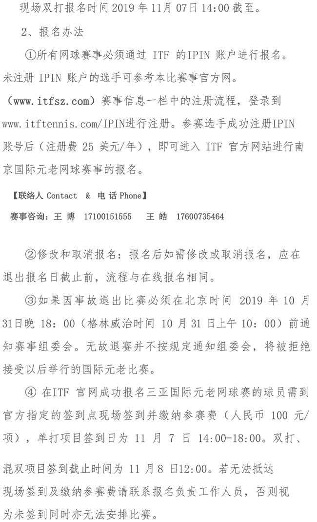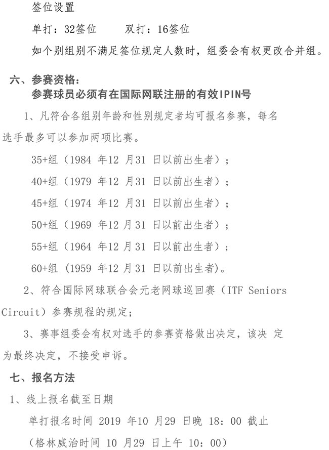 2019ITF三亞國際元老巡回賽競賽規(guī)程